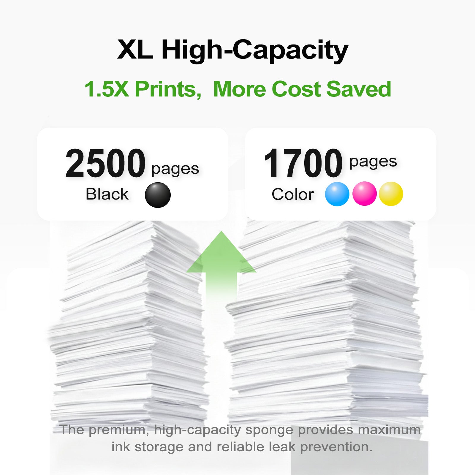 - Higher Yield: Extensive optimisation of the ink cartridge space and the use of superior sponge materials have significantly improved ink yield. Up to 2500 pages per Black 950XL, 1700 pages per Color 951XL, based on 5% coverage (Letter/A4)