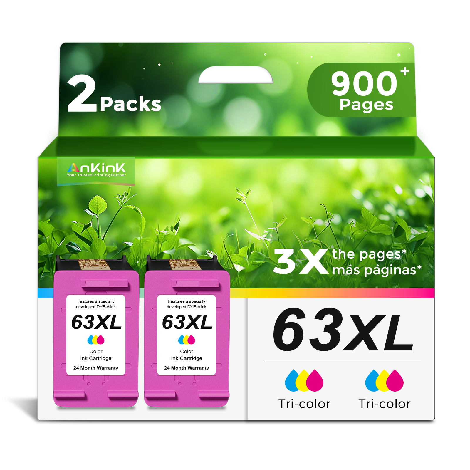 ANKINK Compatible HP 63XL Color Ink Cartridges 2 PACK