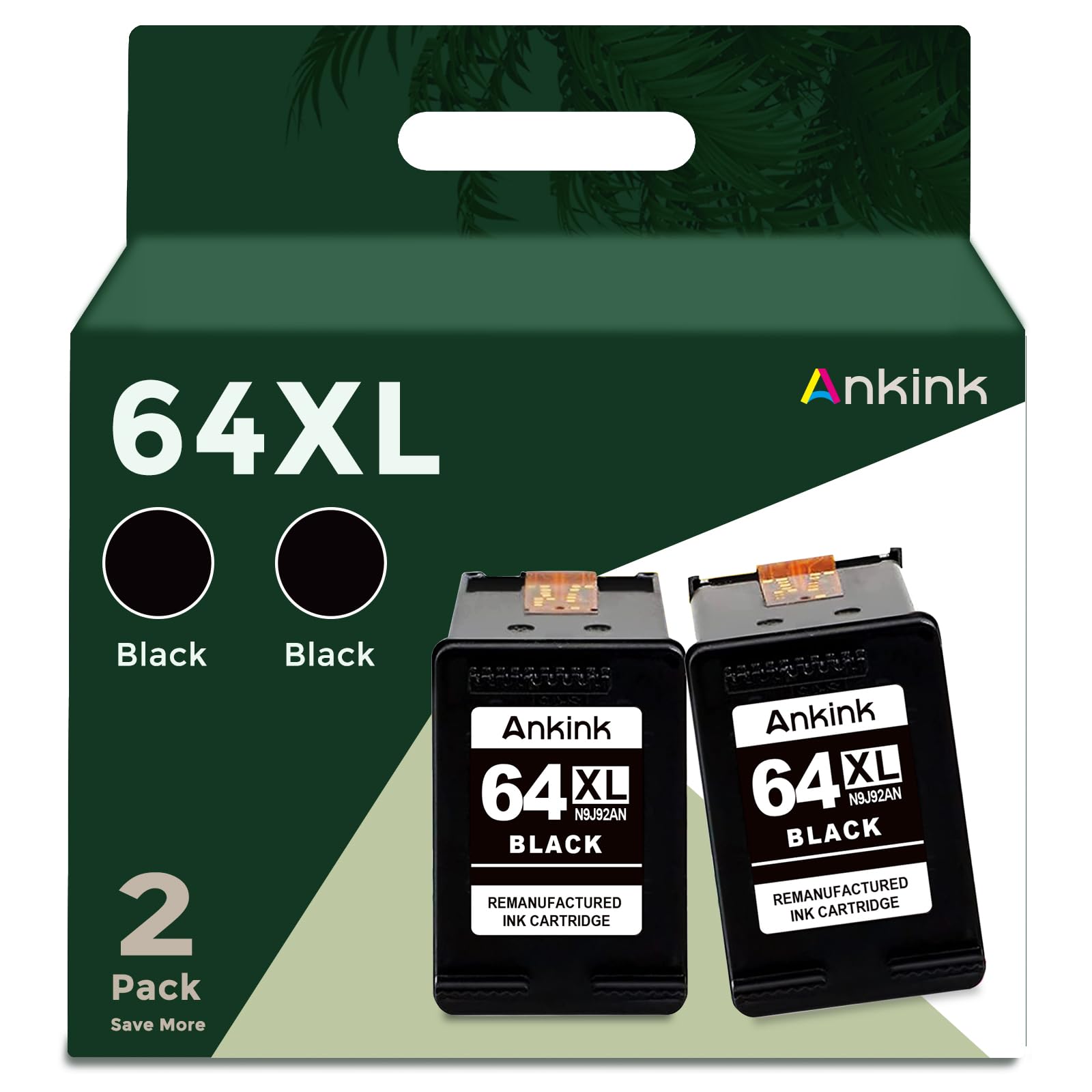 ANKINK compatible HP 64 XL Black Ink Cartridges, 2 PACK