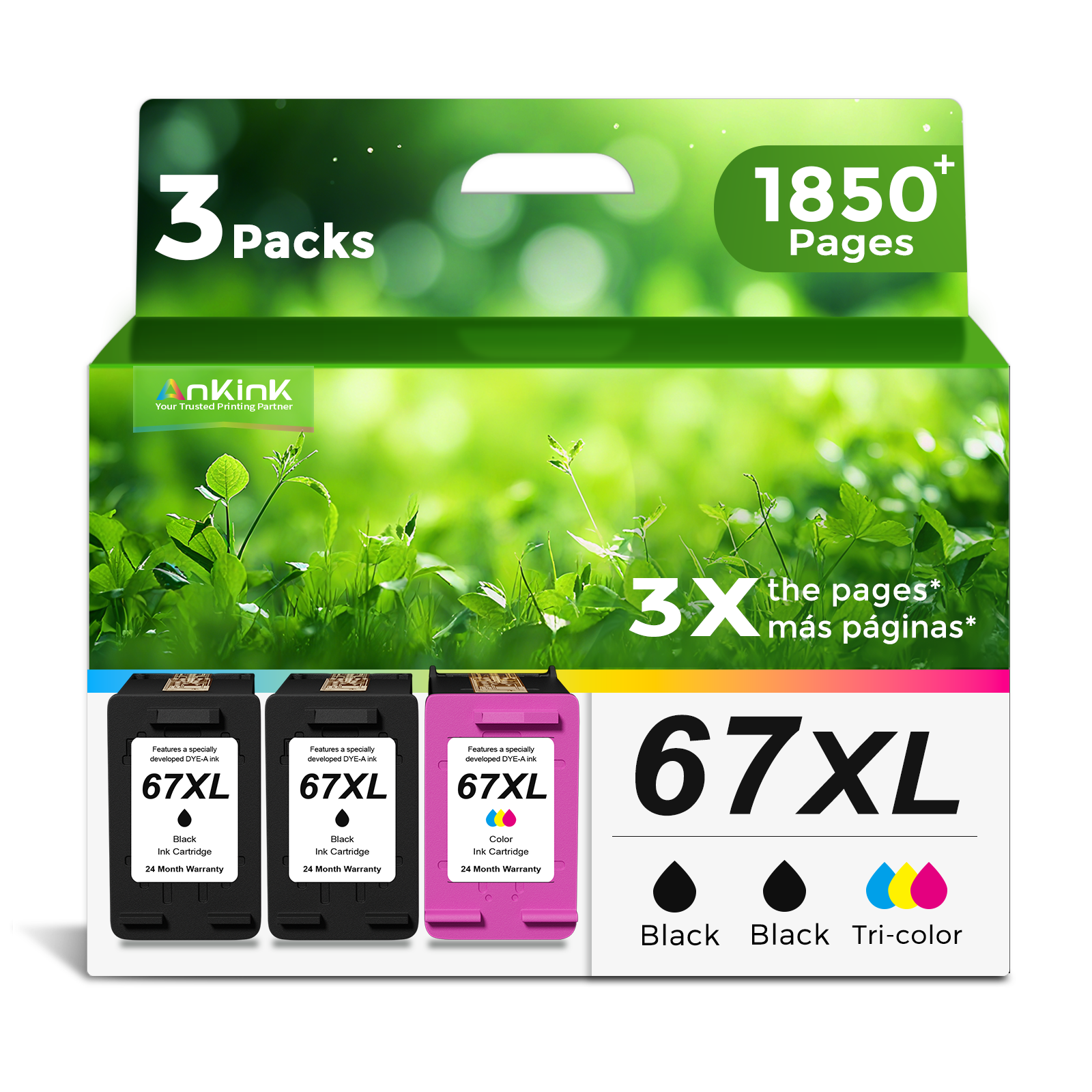 - Package Contents: Contains 3 pack of 67XL ink cartridges, including 2 Black and 1 Tri-Color