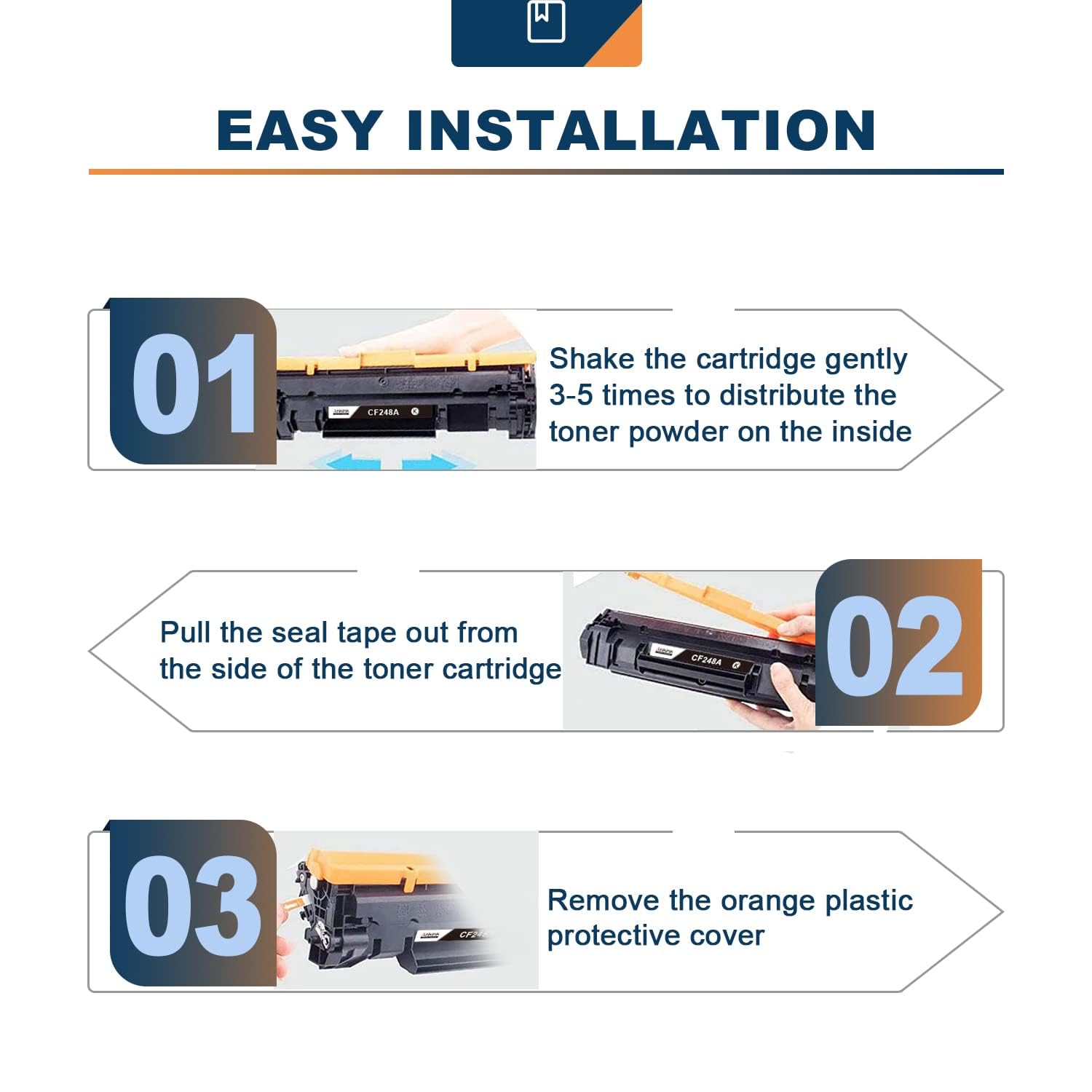 • Package includes:2 Pack of compatible Toner cartridges Replacement for hp laserjet 48a black toner cartridge 48A toner CF248A 248A