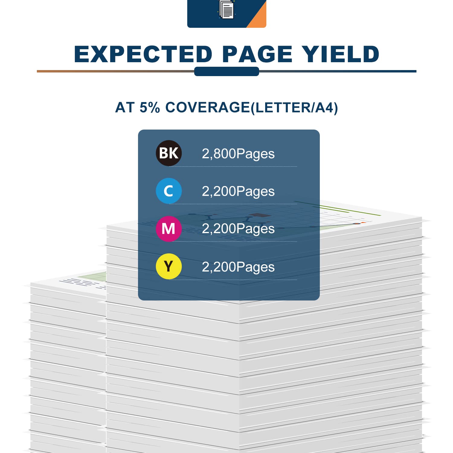 • Higher Page Yield: Up to 2,800 Pages per Black and 2,300 Pages per Color Toner Cartridge at 5% coverage