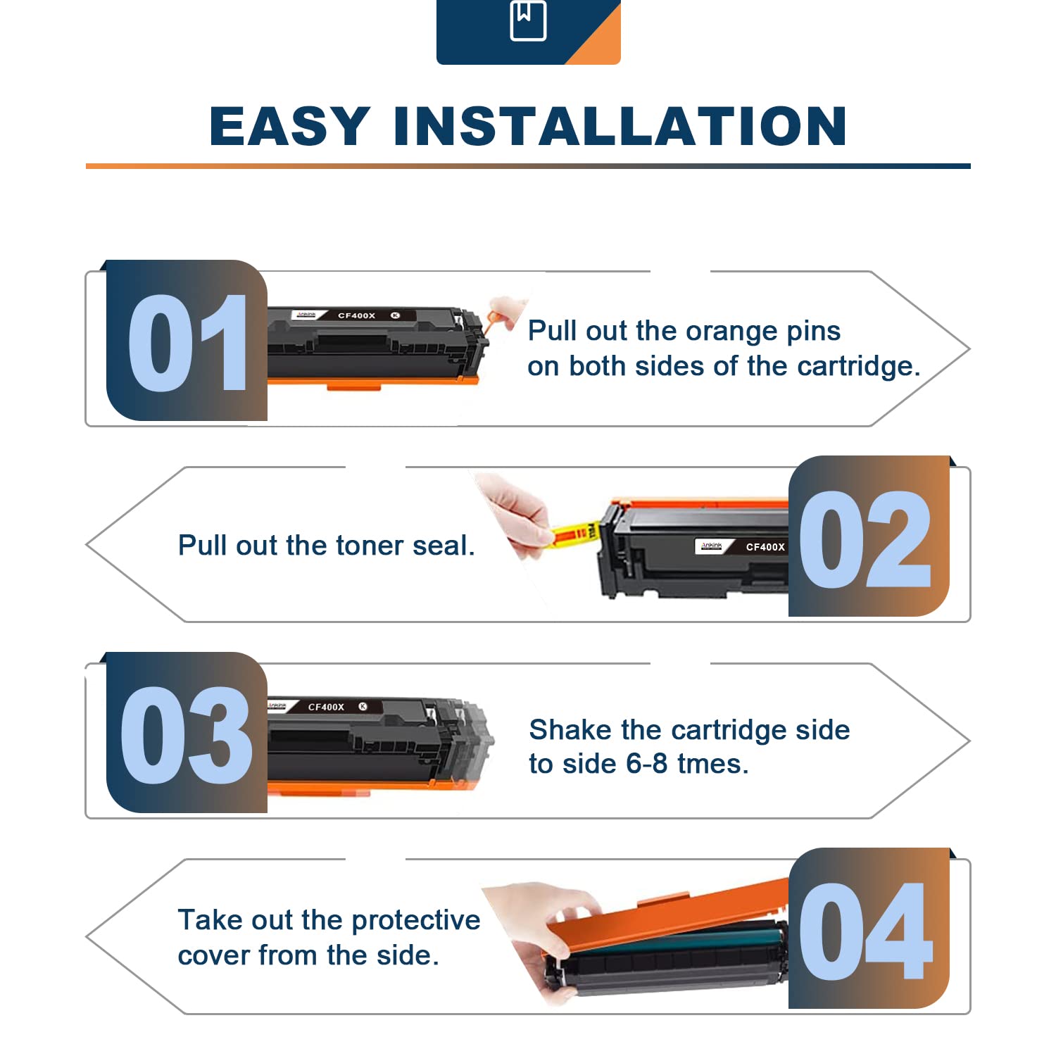 ANKINK Compatible Toner Cartridge Replacement for HP 201X 201A CF400X CF401X CF402X CF403X CF400A for MFP M277dw M252dw M277n M277c6 M252n M277 (Black, Cyan, Magenta, Yellow)