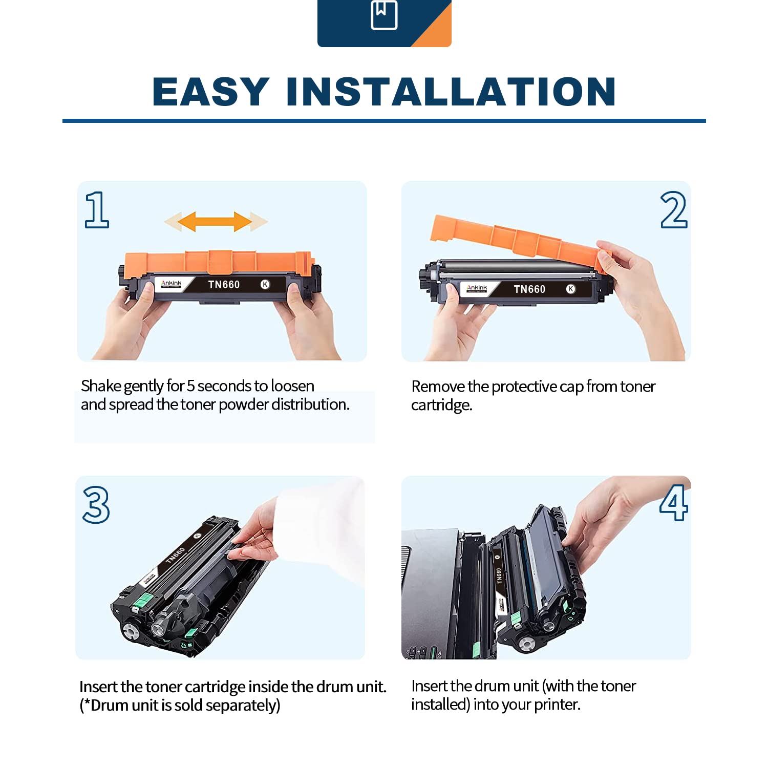 - Warm Tips: Includes TN660 black toner cartridges only; drum unit is not included. Please retain your Ankink or original drum unit when replacing the toner cartridge