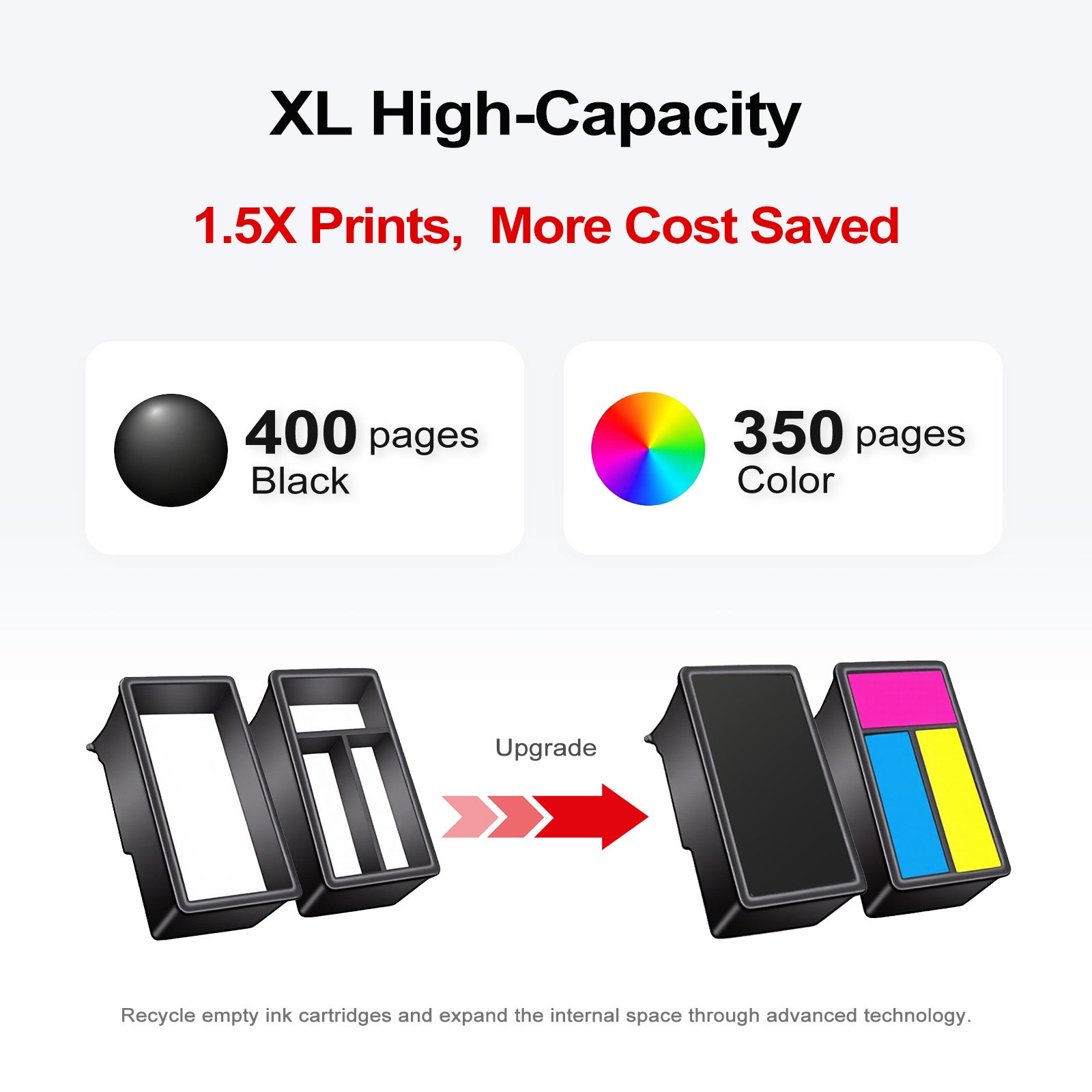 - 1.5x More Capacity: Ankink recycles the empty cartridges and expands their internal space through advanced technology. The use of a superior sponge further improves ink storage capacity, delivering nearly 1.5 times more pages: up to 400 pages per 260XL black cartridge and 350 pages per 261XL color cartridge (Letter/A4)