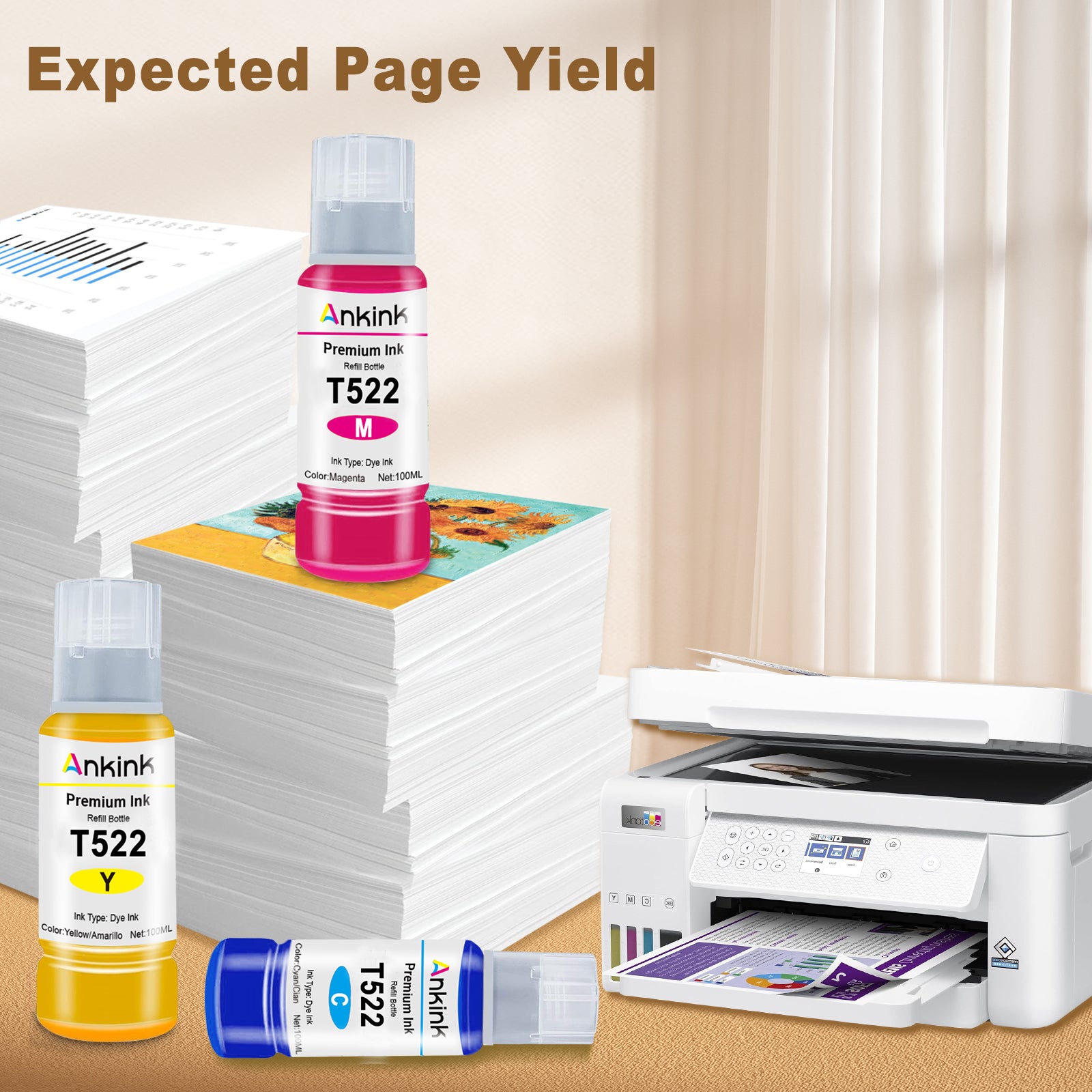 • Ankink T522 inks provide optimal printing results, delivers sharp text and vivid color graphics, perfectly compatible with your Ecotank printer