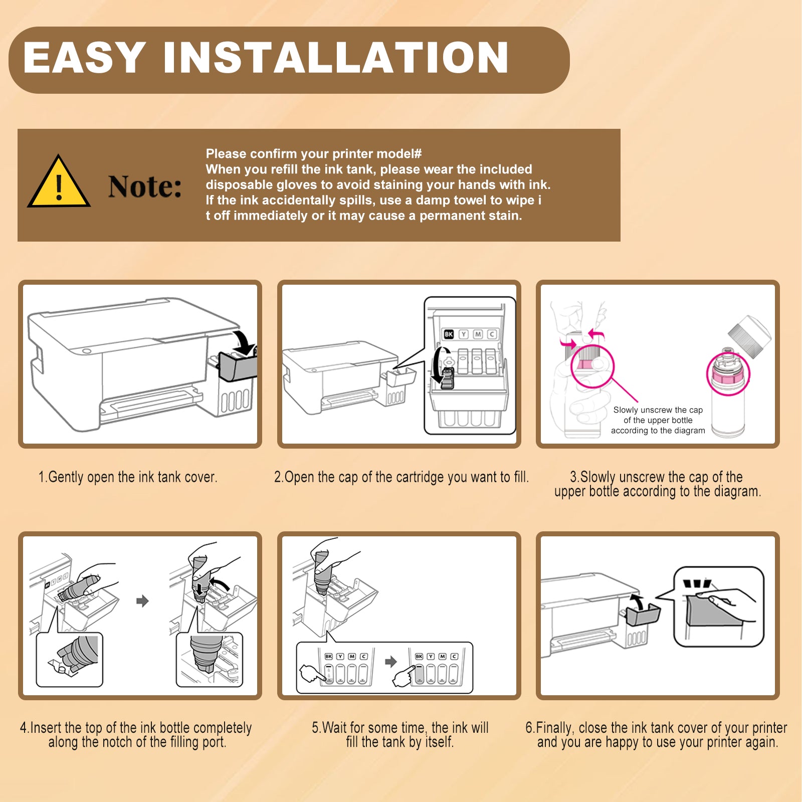 • Printer Compatibility: Compatible with Ecotank ET-2803 ET-2800 ET-2840 ET-3710 ET-3750 ET-3760 ET-3830 ET-3850 ET-4700 ET-4760 ET-4800 ET-4810 ET-2700 ET-2720 ET-2750 ET-2760 ET-2400 ST3000 ET3700 ST-C2100 ST-C4100 Printers